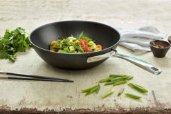 De Alu Pro wok van Demeyere is vervaardigd uit 5 mm dik aluminium en heeft een diameter van 30 cm. De pan is voorzien van een 5-laags antikleeflaag en heeft een roestvrijstalen handgreep.