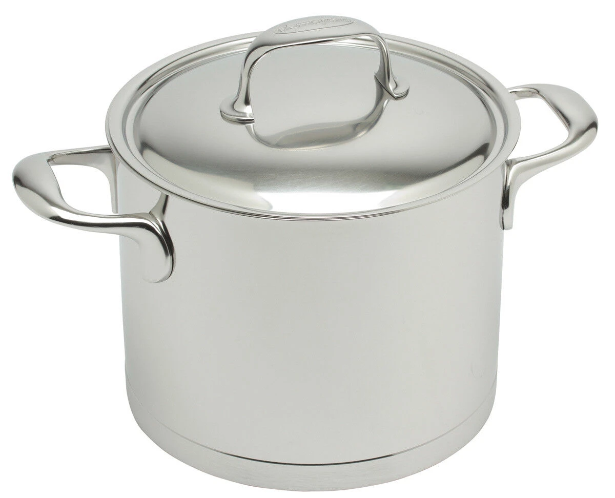 De soeppan heeft een 7-lagenbodem met roestvrij staal en ingekapseld koper. Dit zorgt voor een snelle en gelijkmatige warmtegeleiding. Gebruik de soeppan voor het bereiden van soepen en bijvoorbeeld het pocheren en blancheren van uw etenswaren. De nauwsluitende deksel beperkt het vochtverlies en vocht giet u gemakkelijk af met de schenkrand. Bij juist gebruik zullen de grepen van de pan koel blijven.