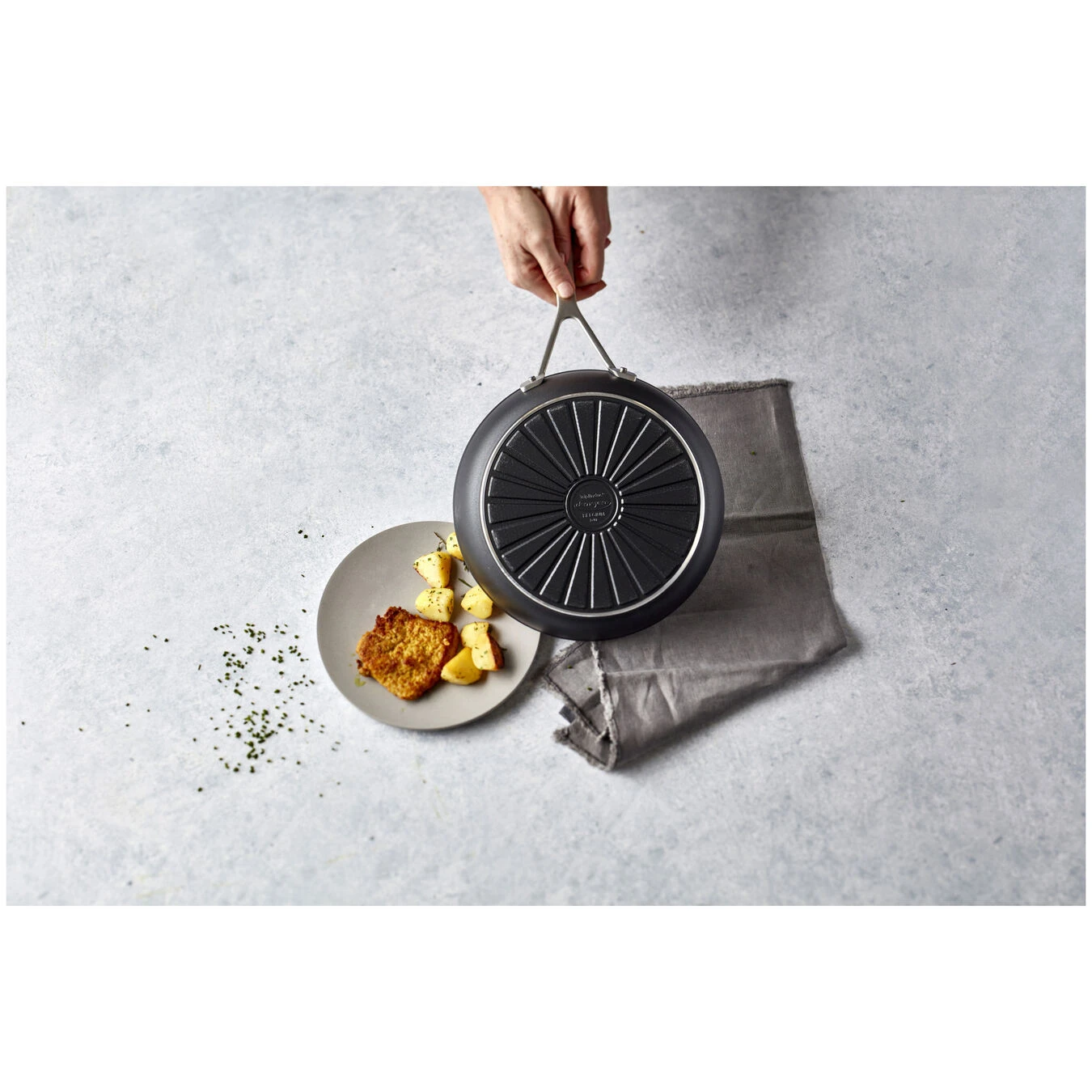 - Geschikt voor alle kookplaten, inclusief inductie, tot 230 °C. Niet gebruiken onder de grill en niet in flamberen