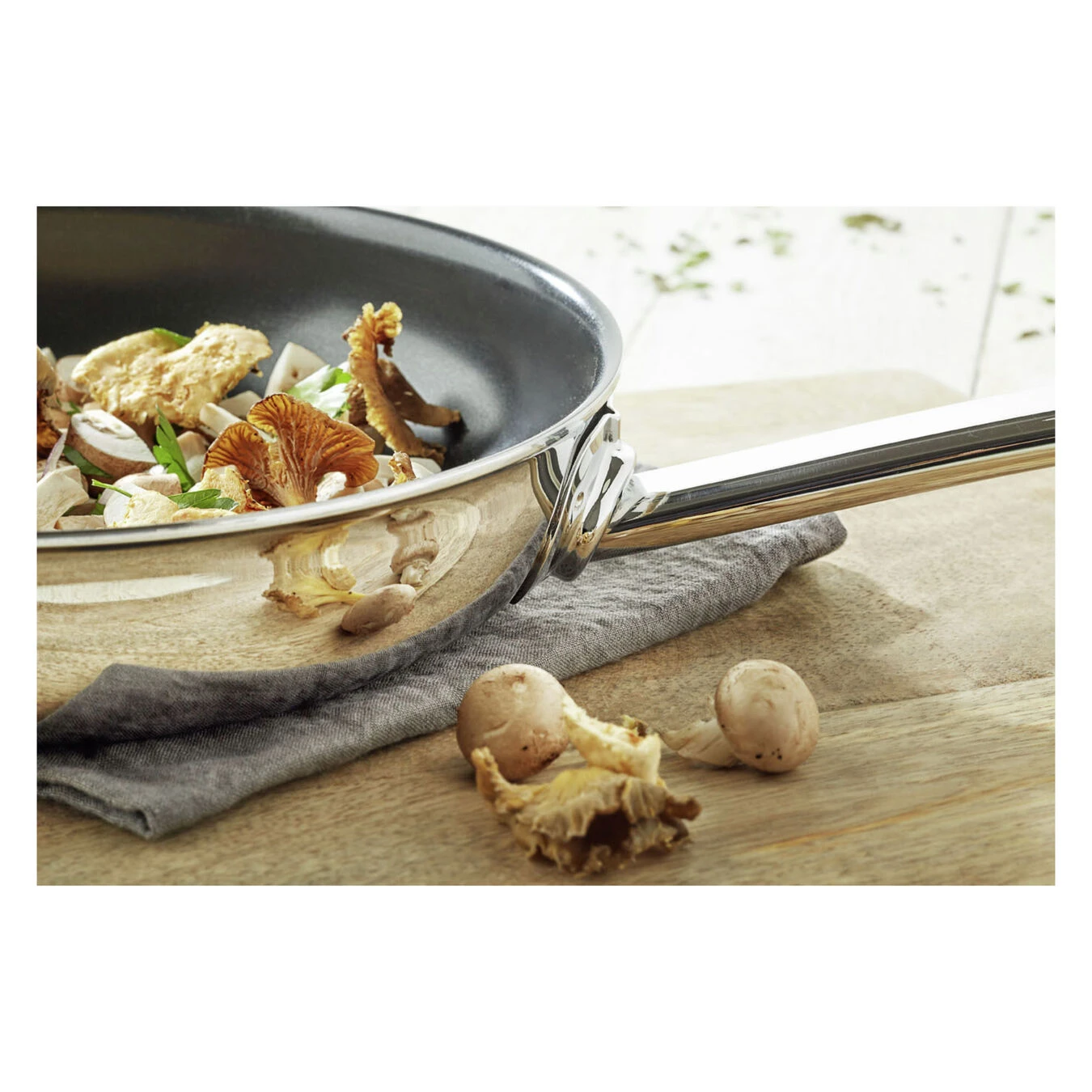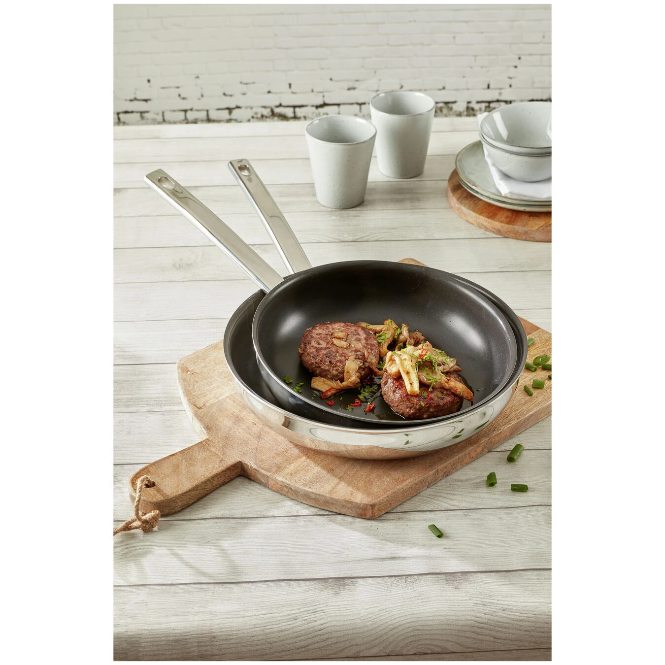 Met deze knappe Ecoline 5 Duraslide pannenset is het heerlijk werken en ben je zeker van mooie resultaten. De roestvrijstalen pannen (24 en 28 cm) met Duraslide® antiaanbaklaag liggen goed in de hand en werden tot aan de rand opgebouwd uit 5-lagenmateriaal. Die solide combinatie van legeringen verdeelt de warmte goed zodat je gelijkmatig en gecontroleerd kunt bakken. Zelfs op een lage stand.
