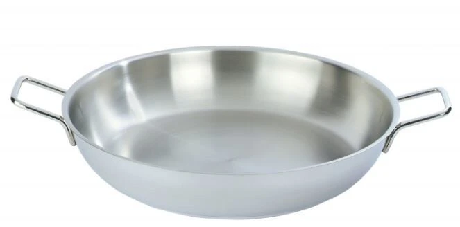 De Demeyere Resto paellapan is gemaakt van roestvrij staal en heeft een bodem met 5 lagen voor goede warmteverdeling. De pan heeft twee handgrepen en heeft een diameter van 46 cm. De totale inhoud van de paellapan is 14 liter. Gebruik de paellapan voor het maken van grote hoeveelheden paella of andere gerechten die gelijkmatig gaar moeten worden.